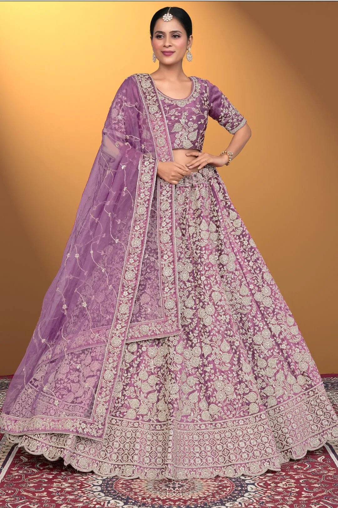 Purple Velvet Lehenga Choli With Net Dupatta For Women